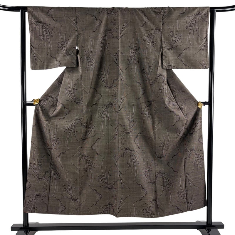 【着物ランク】秀品 【素材】正絹 【身丈】約151.5cm 【裄丈】約62.5cm 【袖丈】約45cm 【袖幅】約31.5cm 【前幅】約23cm 【後幅】約30cm 【サイズ】S 【着物仕立て】袷 【着用時期】10~5月 【状態ランク】ランクA 【着物着用シーン】気軽なパーティー、観劇、食事会、正月、気軽なお茶会、街着