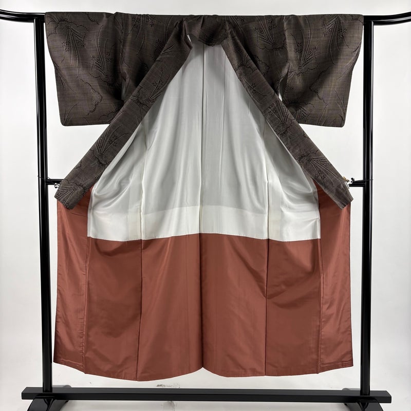 【紬】 茶系 焦茶色 秀品 A 約150cm~約159cm 裄丈62cm以下 (S)size 袖丈46cm以下 7990-9980 美品 二万以下