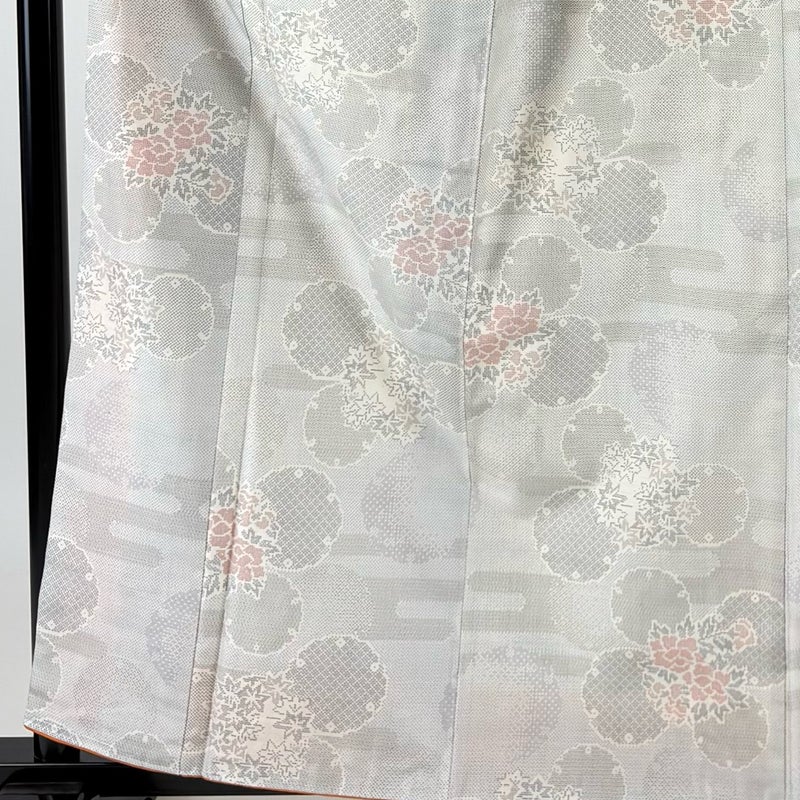 【着物ランク】秀品 【素材】正絹 【身丈】約160.5cm 【裄丈】約67.5cm 【袖丈】約50cm 【袖幅】約34cm 【前幅】約23.5cm 【後幅】約29cm 【サイズ】L 【着物仕立て】袷 【着用時期】10~5月 【状態ランク】ランクB 【着物着用シーン】気軽なパーティー、観劇、食事会、正月、気軽なお茶会、街着