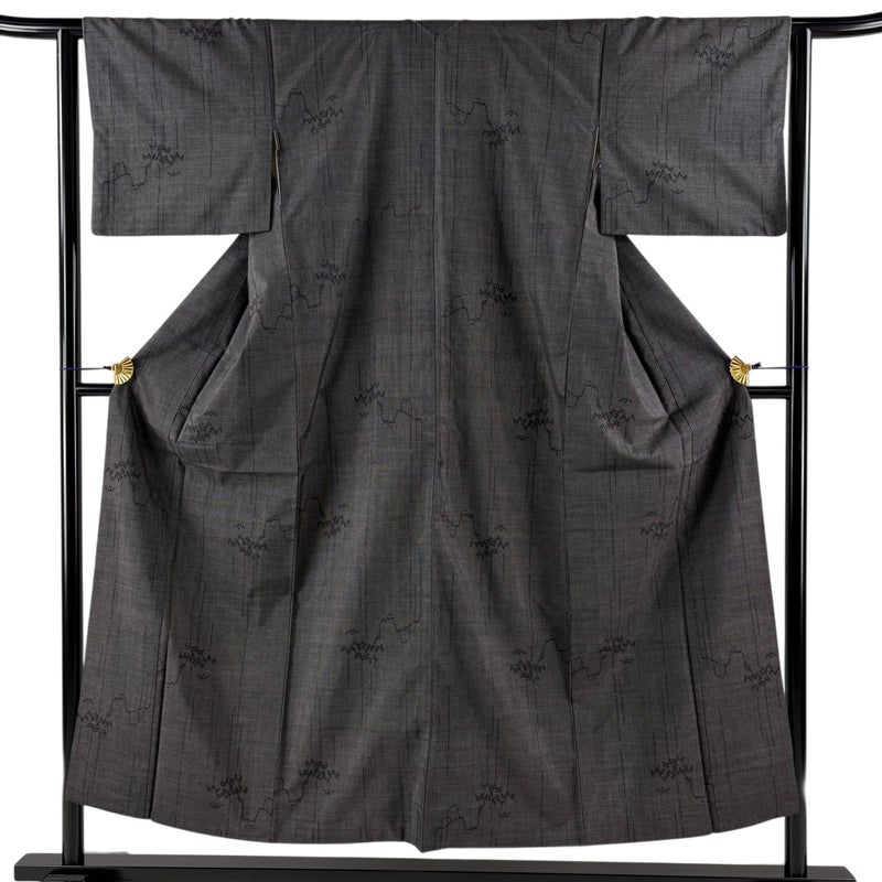 【紬】 灰色系 黒灰 秀品 B 約150cm~約159cm 裄丈63cm-64cm (S)size 袖丈46cm以下 4000-7980 二万以下