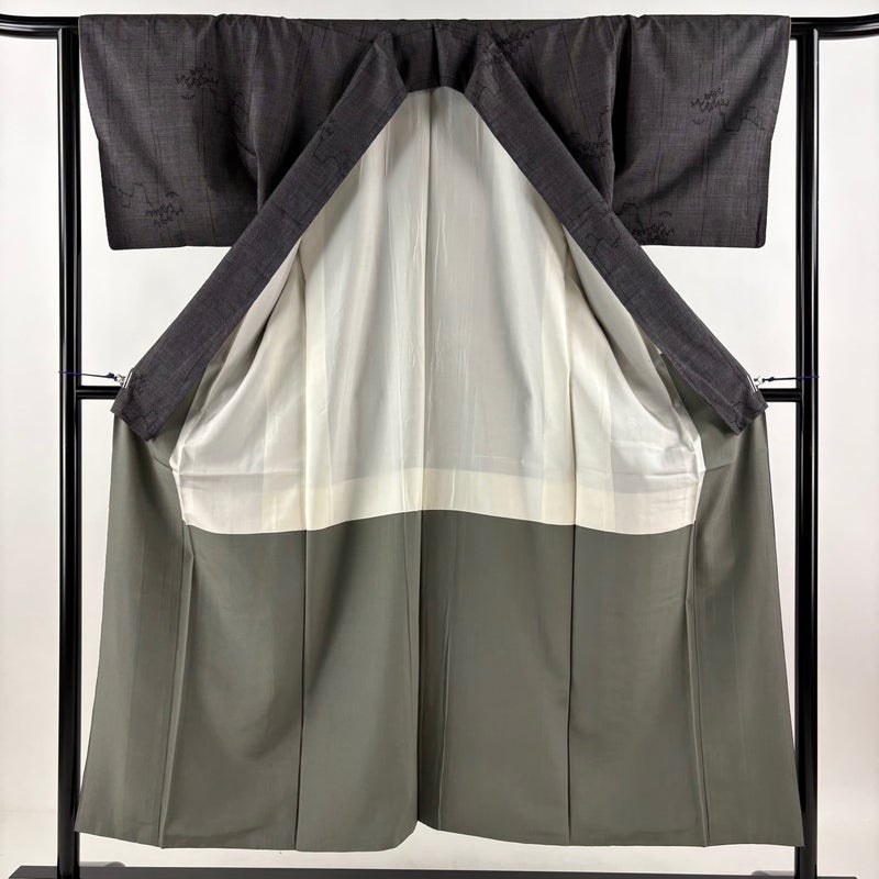 【着物ランク】秀品 【素材】正絹 【身丈】約152cm 【裄丈】約63.5cm 【袖丈】約41.5cm 【袖幅】約32.5cm 【前幅】約24cm 【後幅】約29.5cm 【サイズ】S 【着物仕立て】袷 【着用時期】10~5月 【状態ランク】ランクB 【着物着用シーン】気軽なパーティー、観劇、食事会、正月、気軽なお茶会、街着