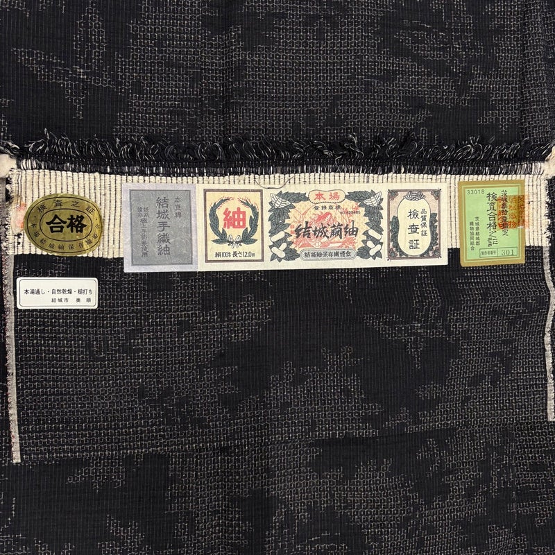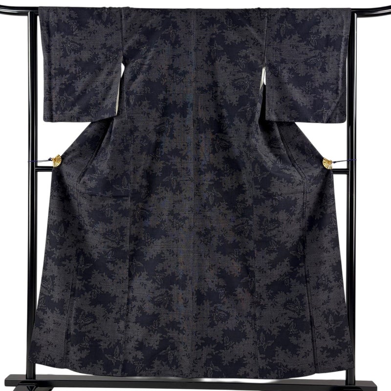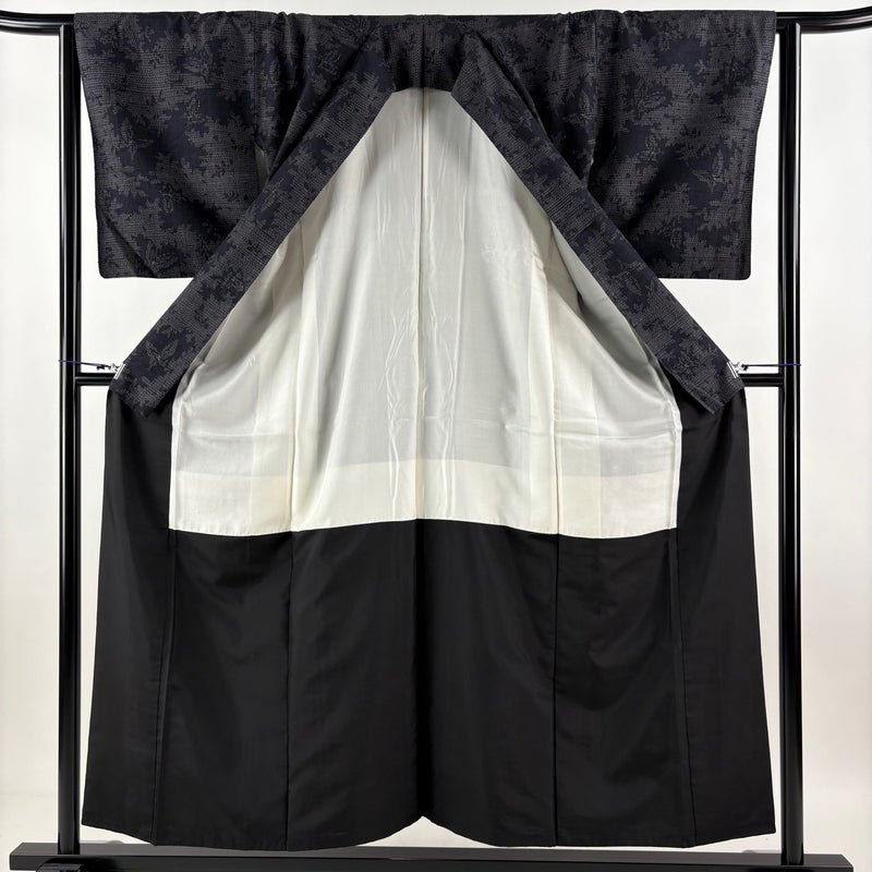 【紬】 黒系 墨色 秀品 A 約150cm~約159cm 裄丈63cm-64cm (M)size 袖丈49cm 7990-9980 美品 二万以下