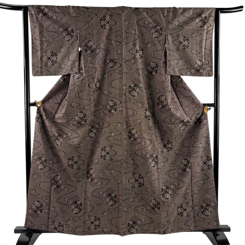 【着物ランク】優品 【素材】正絹 【身丈】約162cm 【裄丈】約64cm 【袖丈】約49cm 【袖幅】約33.5cm 【前幅】約25.5cm 【後幅】約29.5cm 【サイズ】M 【着物仕立て】袷 【着用時期】10~5月 【状態ランク】ランクA 【着物着用シーン】気軽なパーティー、観劇、食事会、正月、気軽なお茶会、街着