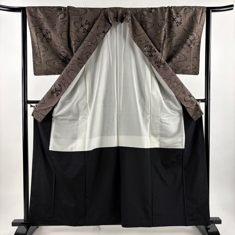 【紬】 茶系 焦茶色 優品 A 約160cm~約169cm 裄丈63cm-64cm (M)size 袖丈49cm 4000-7980 美品 二万以下