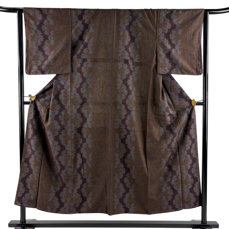 普段着やおしゃれ着として人気の紬でございます。 元々は日常着として着用していたので、その土地の風土に合った様々な種類がある素敵な一品です。 ※身丈・裄丈の縫込みの長さは測っておりません。 表地所々にシワがございます。 衿裏にシミ、胴裏にホックシミ、裏地所々にシワ、衿裏と胴裏に黄変がございます。 リユース品としては目立った染み傷なく、状態の良いお品でございます。 ※なお、厳しく商品の状態確認を行っておりますが、記載の汚れ以外にも見落とし箇所がある可能性がある旨ご了承いただけますと幸いです。 沢山の商品の中からご覧いただき誠にありがとうございます。
