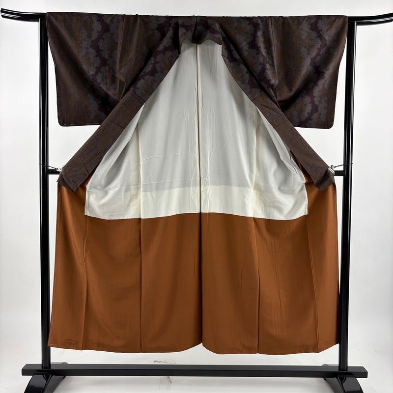 【紬】 茶系 茶紫 優品 A 約150cm~約159cm 裄丈63cm-64cm (S)size 袖丈48cm 4000-7980 美品 二万以下
