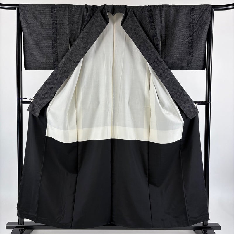 【紬】 灰色系 黒灰 秀品 A 約150cm~約159cm 裄丈65cm (M)size 袖丈46cm以下 7990-9980 美品 二万以下