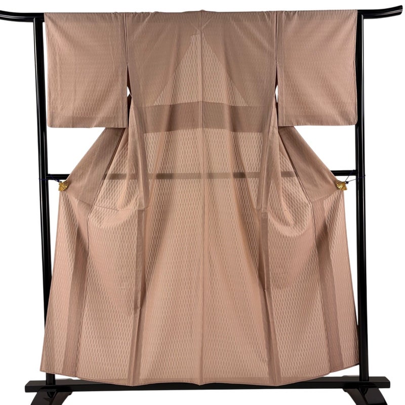 【着物ランク】秀品 【素材】正絹 【身丈】約155.5cm 【裄丈】約63cm 【袖丈】約48.5cm 【袖幅】約33cm 【前幅】約25cm 【後幅】約30cm 【サイズ】S 【着物仕立て】薄物 【着用時期】7~8月 【状態ランク】ランクA 【着物着用シーン】気軽なパーティー、観劇、食事会、正月、気軽なお茶会、街着