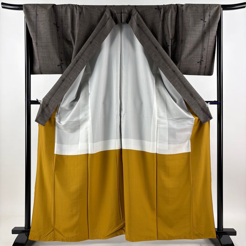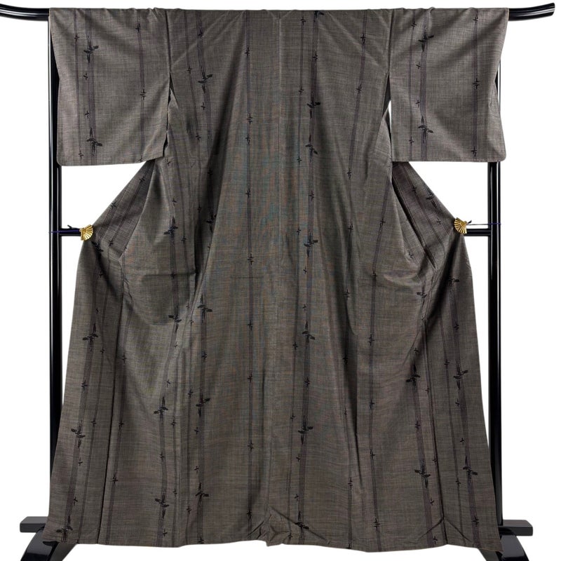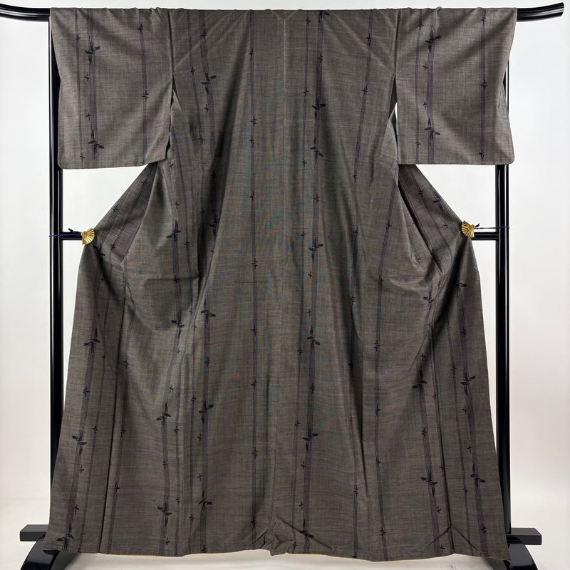 【紬】 灰色系 灰茶 秀品 A 約160cm~約169cm 裄丈69cm以上 (L)size 袖丈49cm 7990-9980 美品 二万以下