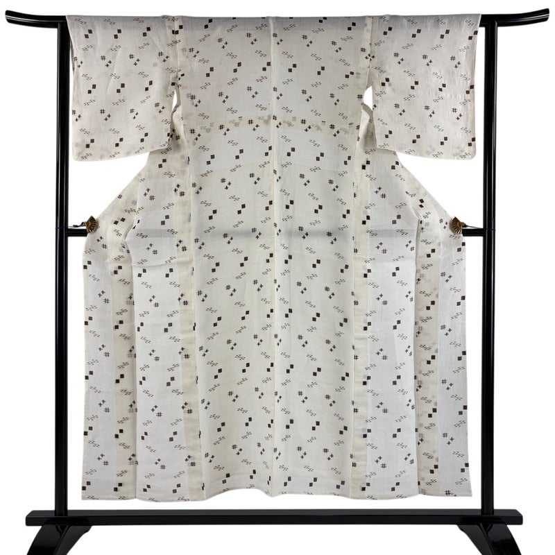 【着物ランク】逸品 【素材】正絹 【身丈】約152.5cm 【裄丈】約63cm 【袖丈】約46cm 【袖幅】約33cm 【前幅】約22.5cm 【後幅】約28.5cm 【サイズ】S 【着物仕立て】薄物 【着用時期】7~8月 【状態ランク】ランクB 【着物着用シーン】気軽なパーティー、観劇、食事会、正月、気軽なお茶会、街着