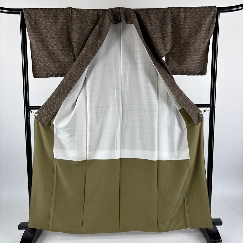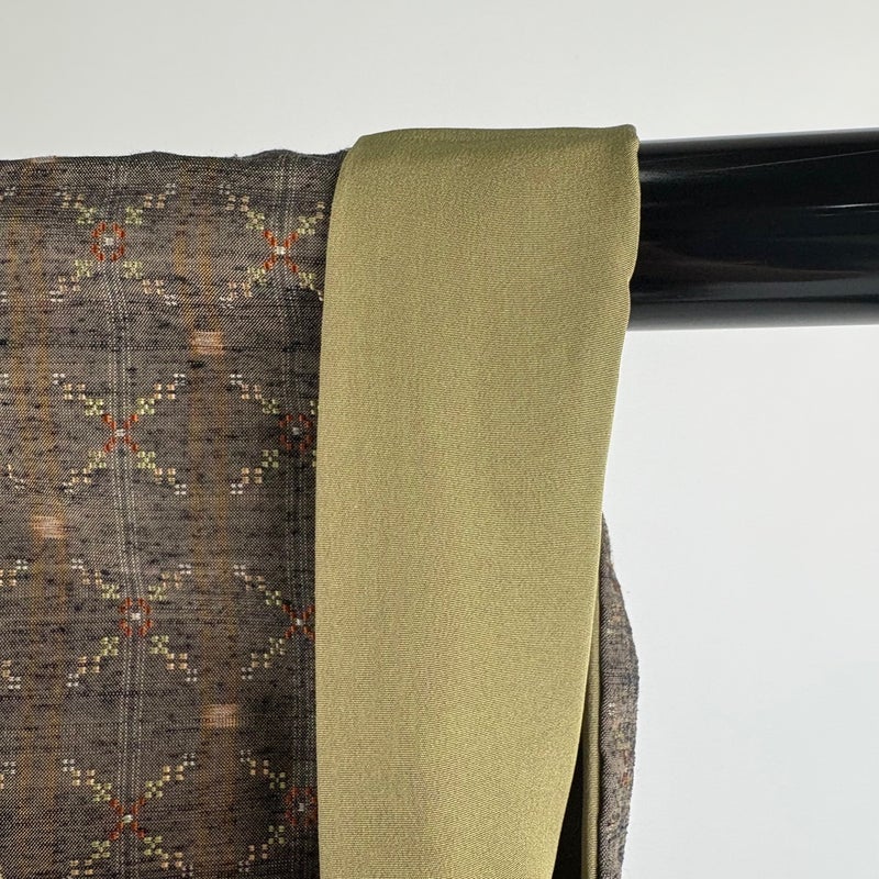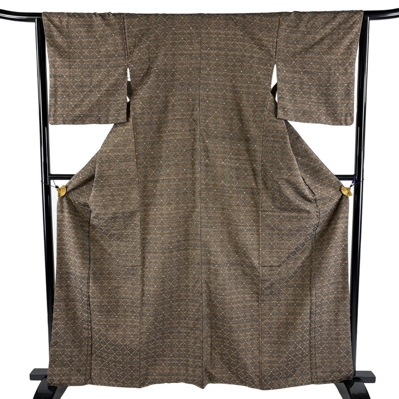 普段着やおしゃれ着として人気の紬でございます。 元々は日常着として着用していたので、その土地の風土に合った様々な種類がある素敵な一品です。 身丈はこれ以上伸ばすことができません。 裄丈を+2.0cm程、現在の長さから伸ばせます。 左袖口中にシミ、両袖口中に薄汚れ、上前の裾付近と右前袖などにシワがございます。 リユース品としては目立った染み傷なく、状態の良いお品でございます。 ※なお、厳しく商品の状態確認を行っておりますが、記載の汚れ以外にも見落とし箇所がある可能性がある旨ご了承いただけますと幸いです。 沢山の商品の中からご覧いただき誠にありがとうございます。