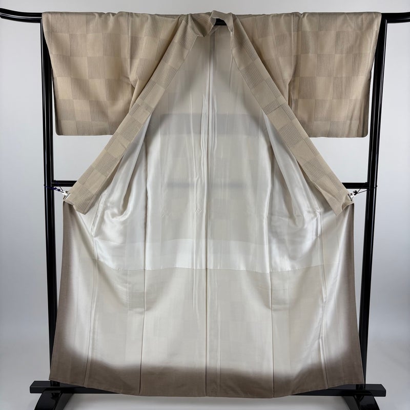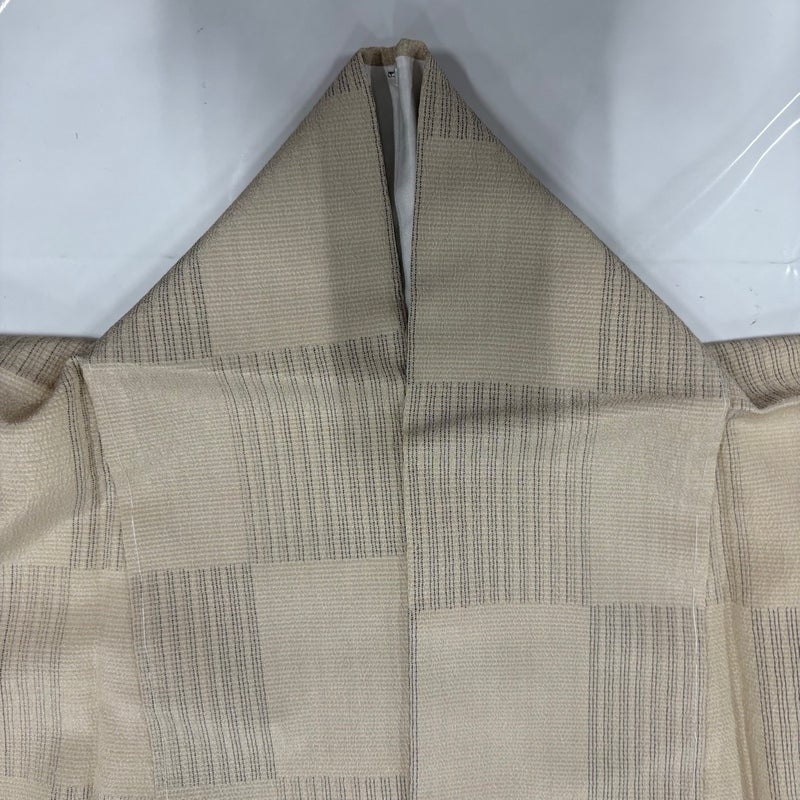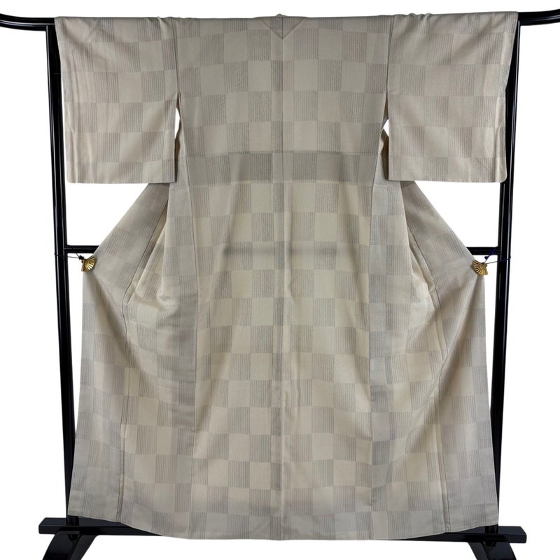【紬】 白系 ベージュ 逸品 A 約150cm~約159cm 裄丈63cm-64cm (M)size 袖丈48cm 9990-29990 美品 五万以下