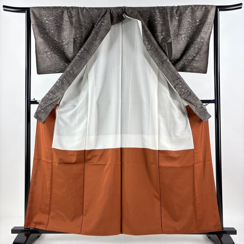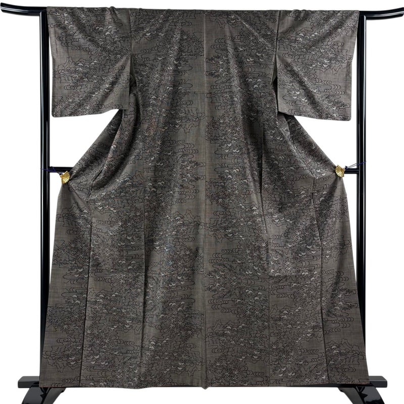 【紬】 灰色系 灰茶 秀品 C 約160cm~約169cm 裄丈63cm-64cm (M)size 袖丈48cm 4000-7980 二万以下
