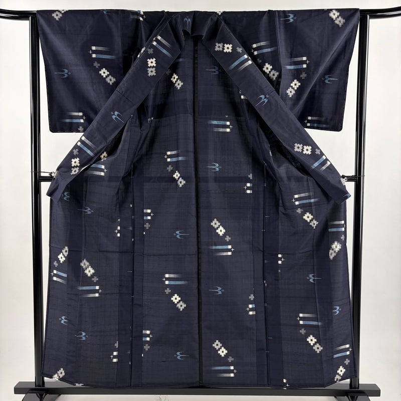 【紬】 青系 濃紺 逸品 A 約150cm~約159cm 裄丈63cm-64cm (M)size 袖丈49cm 30000- 美品 五万以下
