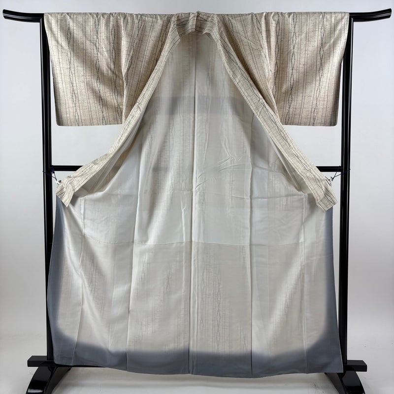 【紬】 白系 ベージュ 名品 B 約160cm~約169cm 裄丈65cm (M)size 袖丈49cm 30000- 五万以下
