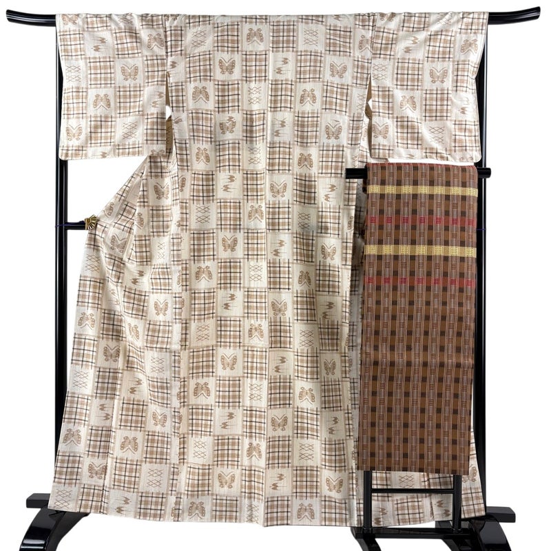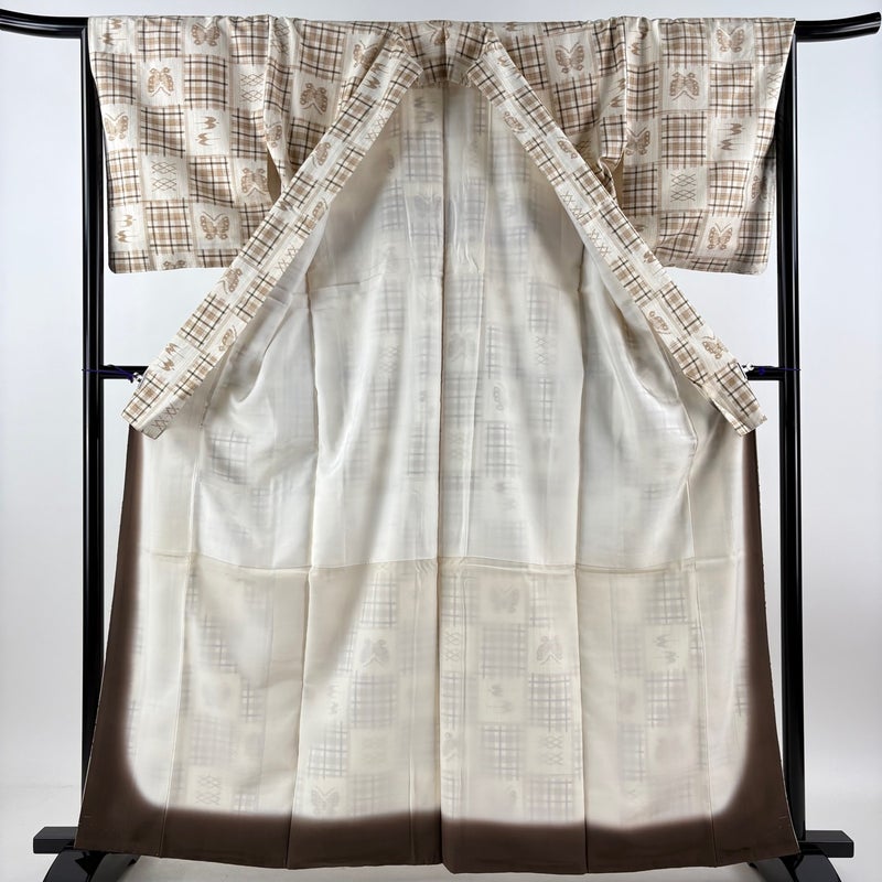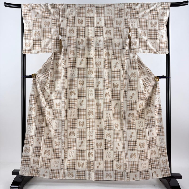 【紬】 茶系 薄茶色 秀品 A 約160cm~約169cm 裄丈66cm (M)size 袖丈49cm 9990-29990 美品 五万以下