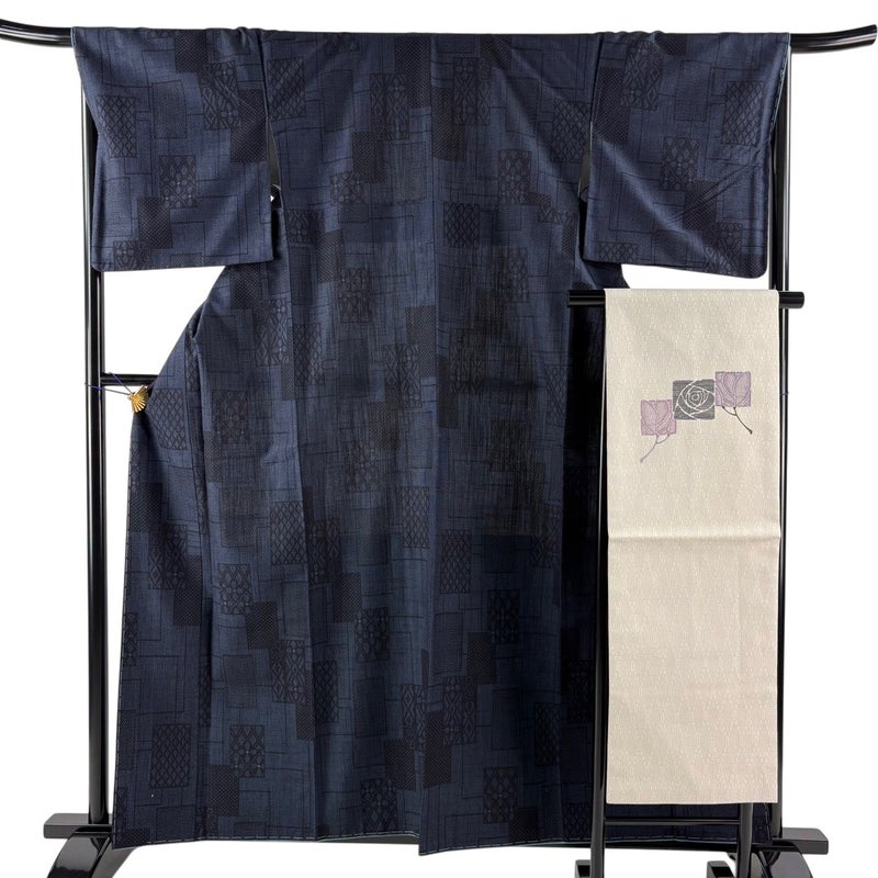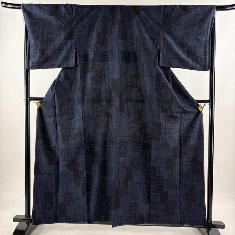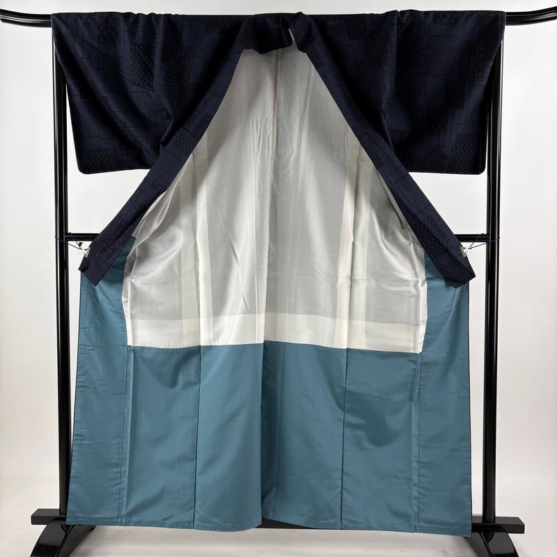 【紬】 青系 紺色 秀品 A 約160cm~約169cm 裄丈67cm-68cm (M)size 袖丈48cm 9990-29990 美品 五万以下