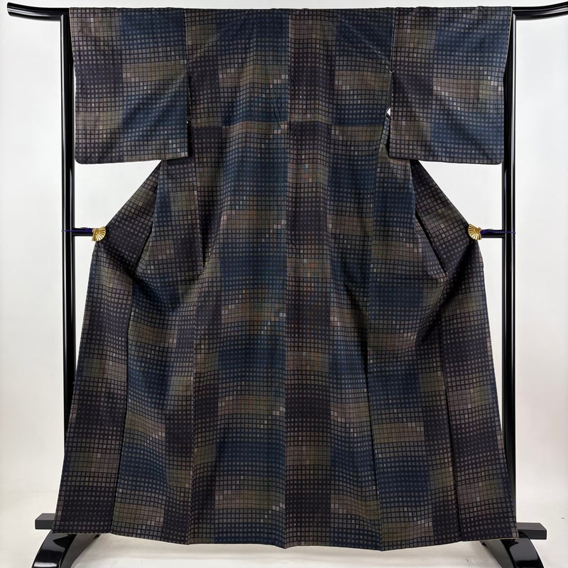 【紬】 青系 紺色 秀品 A 約160cm~約169cm 裄丈63cm-64cm (M)size 袖丈49cm 9990-29990 美品 五万以下