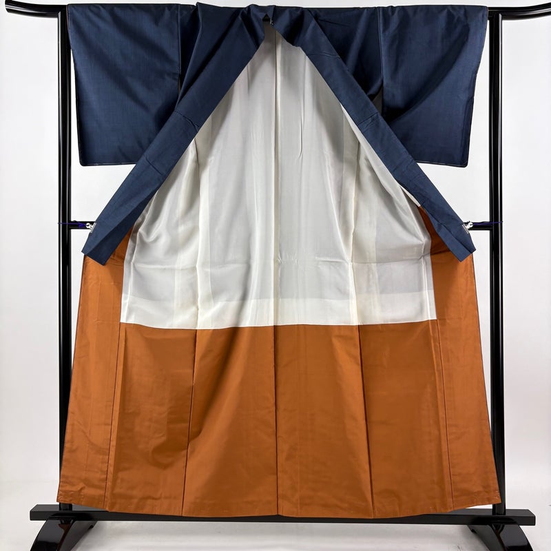 【紬】 青系 紺色 秀品 A 約150cm~約159cm 裄丈63cm-64cm (M)size 袖丈49cm 9990-29990 美品 五万以下