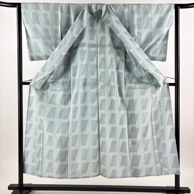 【紬】 青系 薄青緑 優品 B 約150cm~約159cm 裄丈63cm-64cm (S)size 袖丈48cm 4000-7980 二万以下