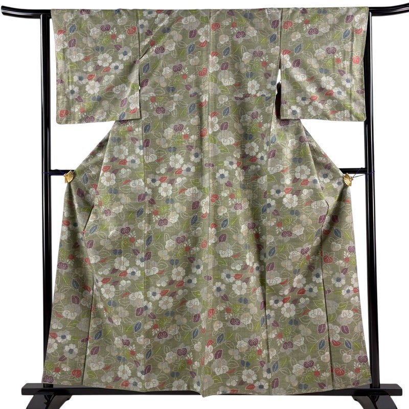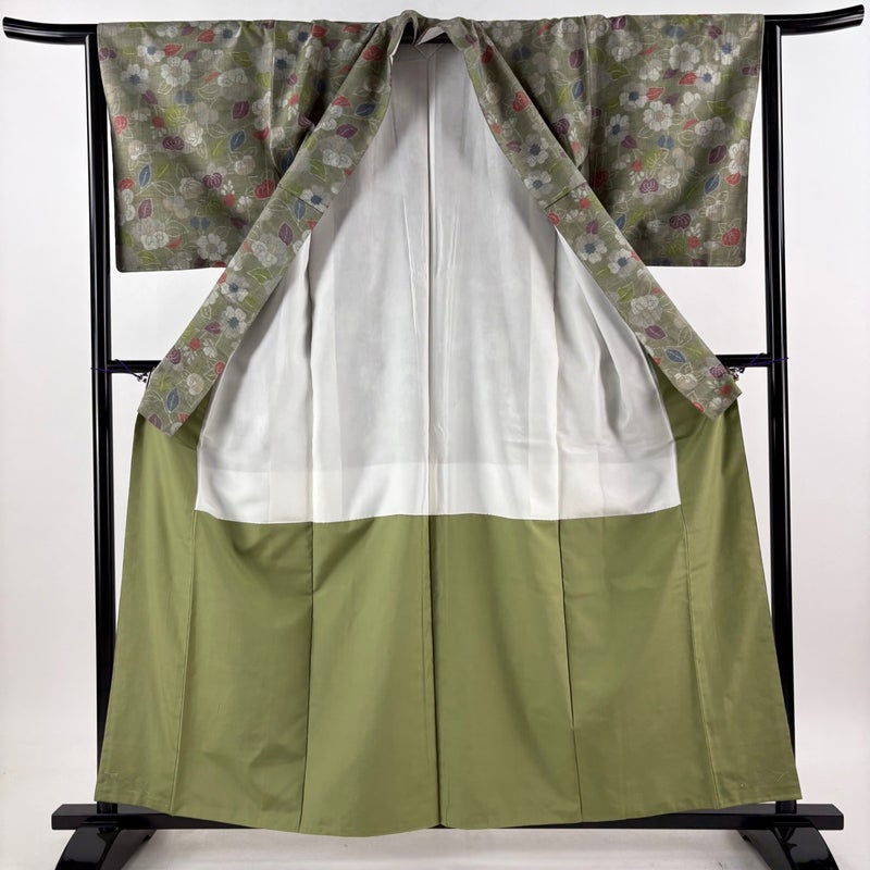 【紬】 灰色系 灰緑 優品 A 約150cm~約159cm 裄丈63cm-64cm (S)size 袖丈49cm 4000-7980 美品 二万以下
