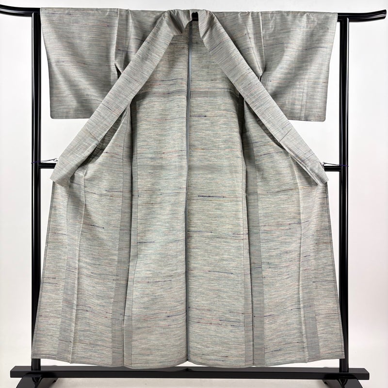 【紬】 灰色系 灰緑 優品 A 約150cm~約159cm 裄丈62cm以下 (S)size 袖丈47cm 4000-7980 美品 二万以下