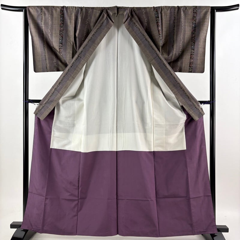 【紬】 茶系 茶紫 優品 A 約160cm~約169cm 裄丈63cm-64cm (M)size 袖丈47cm 4000-7980 美品 二万以下