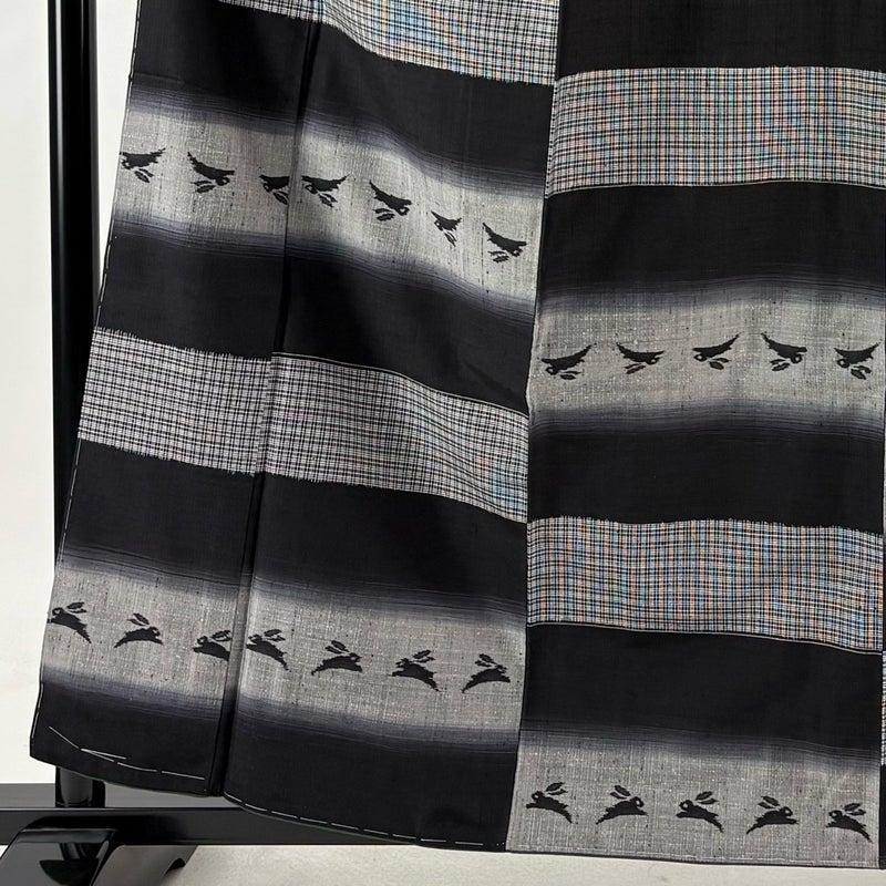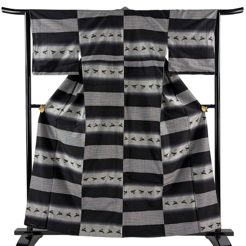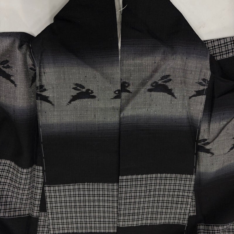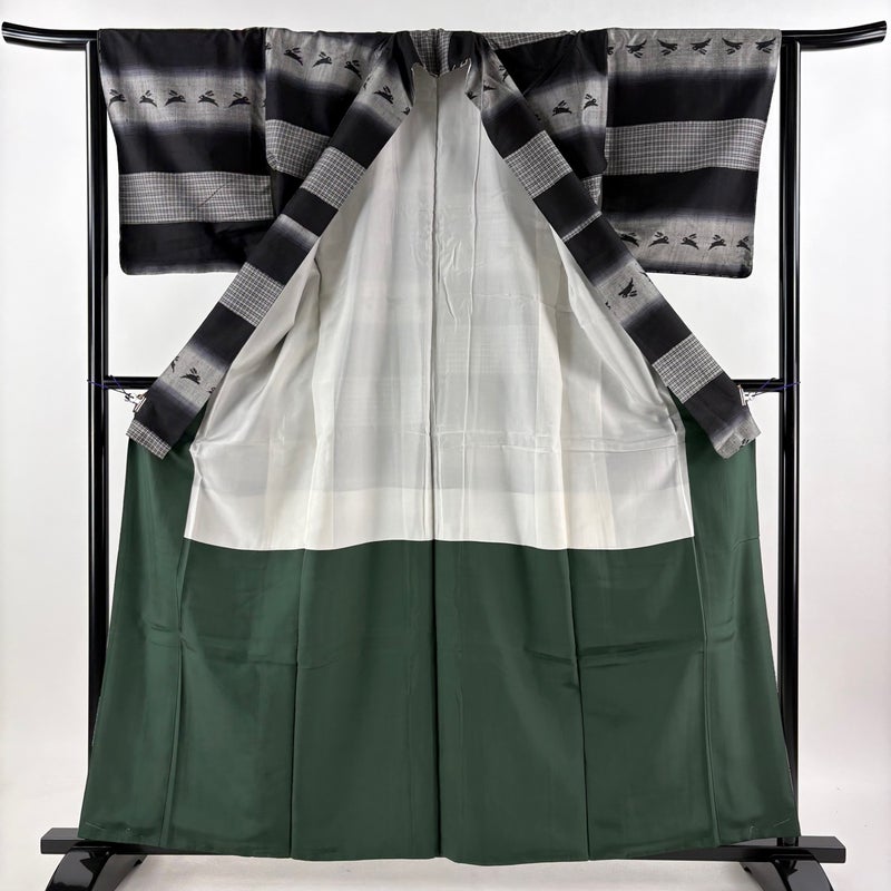 【紬】 黒系 黒 優品 B 約150cm~約159cm 裄丈63cm-64cm (M)size 袖丈47cm -3980 二万以下