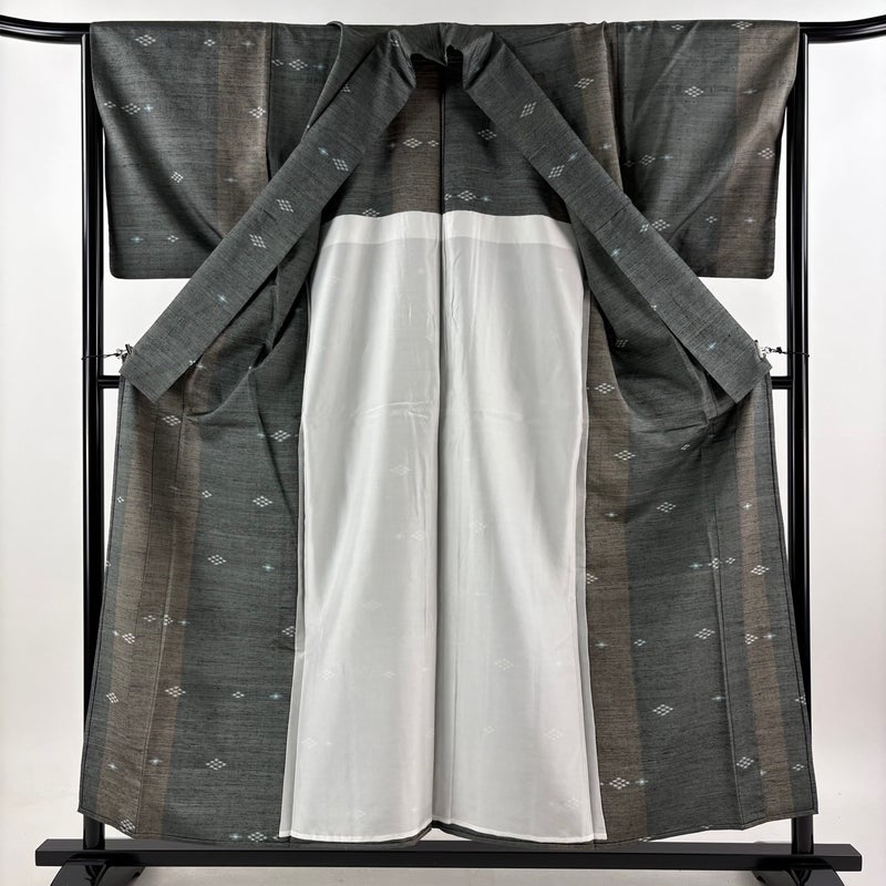 【紬】 灰色系 灰緑 優品 B 約150cm~約159cm 裄丈65cm (M)size 袖丈48cm 4000-7980 二万以下