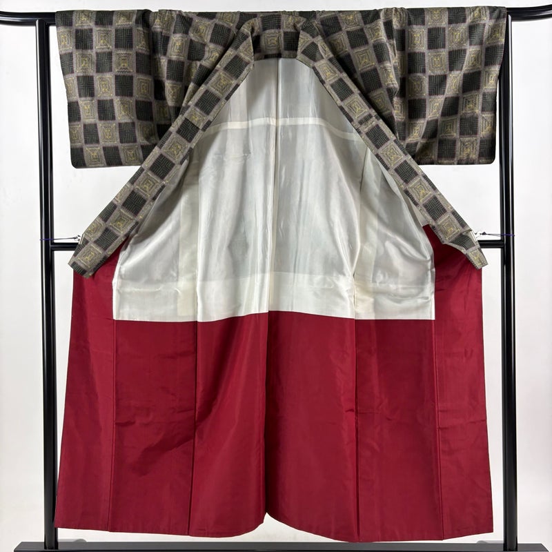 【着物ランク】優品 【素材】正絹 【身丈】約153.5cm 【裄丈】約63.5cm 【袖丈】約45cm 【袖幅】約32.5cm 【前幅】約24cm 【後幅】約30cm 【サイズ】S 【着物仕立て】袷 【着用時期】10~5月 【状態ランク】ランクA 【着物着用シーン】気軽なパーティー、観劇、食事会、正月、気軽なお茶会、街着