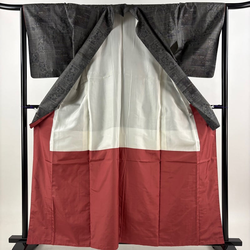 【紬】 灰色系 黒灰 優品 A 約160cm~約169cm 裄丈65cm (M)size 袖丈49cm 4000-7980 美品 二万以下