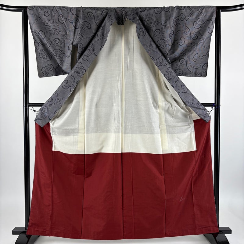 【紬】 灰色系 黒灰 優品 B 約160cm~約169cm 裄丈63cm-64cm (S)size 袖丈48cm -3980 二万以下