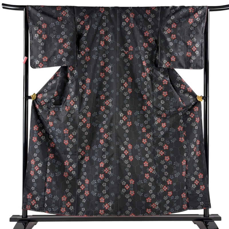 【着物ランク】優品 【素材】正絹 【身丈】約157cm 【裄丈】約65cm 【袖丈】約49.5cm 【袖幅】約33cm 【前幅】約23cm 【後幅】約30cm 【サイズ】M 【着物仕立て】袷 【着用時期】10~5月 【身丈2】約78cm 【裄丈2】約66cm 【状態ランク】ランクB 【着物着用シーン】気軽なパーティー、観劇、食事会、正月、気軽なお茶会、街着