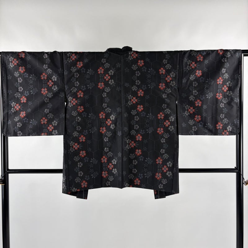 【紬】 黒系 黒 優品 B 約150cm~約159cm 裄丈65cm (M)size 袖丈49cm -3980 二万以下