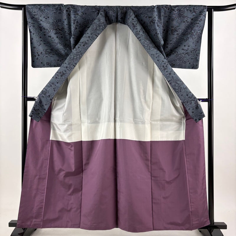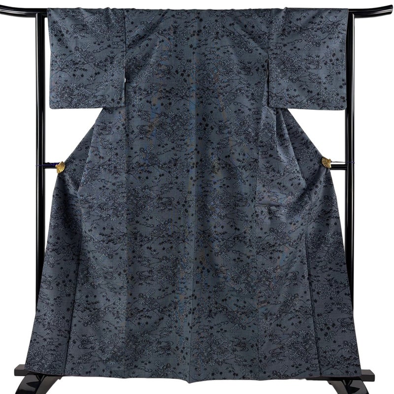【紬】 灰色系 青灰色 優品 B 約160cm~約169cm 裄丈63cm-64cm (M)size 袖丈46cm以下 -3980 二万以下
