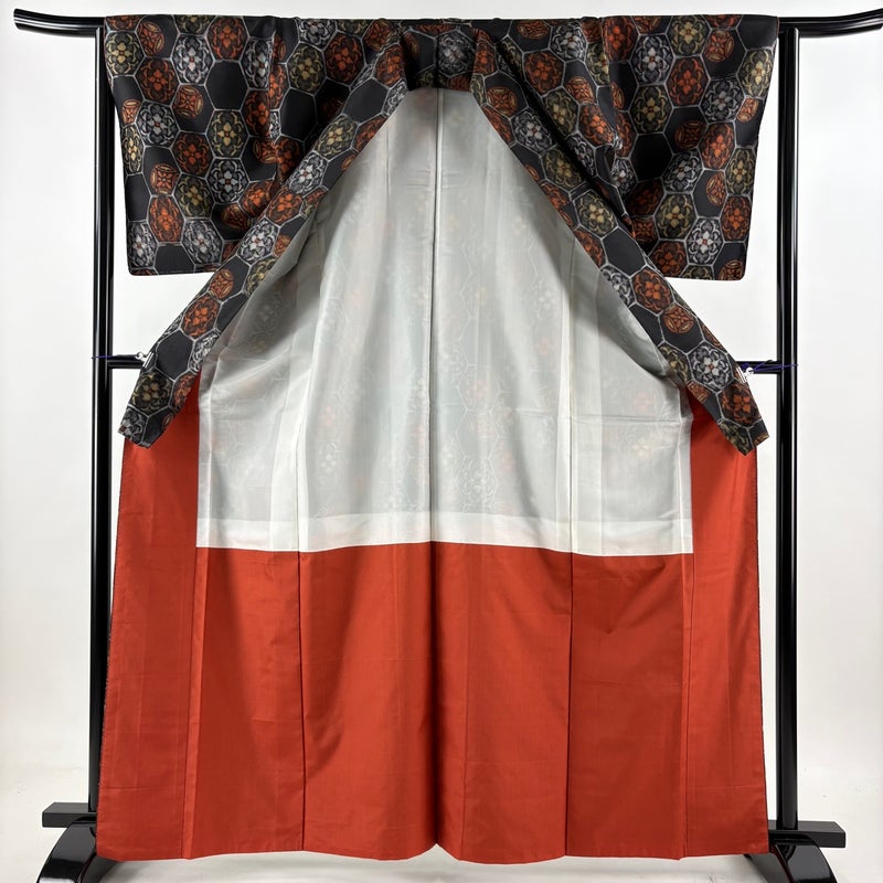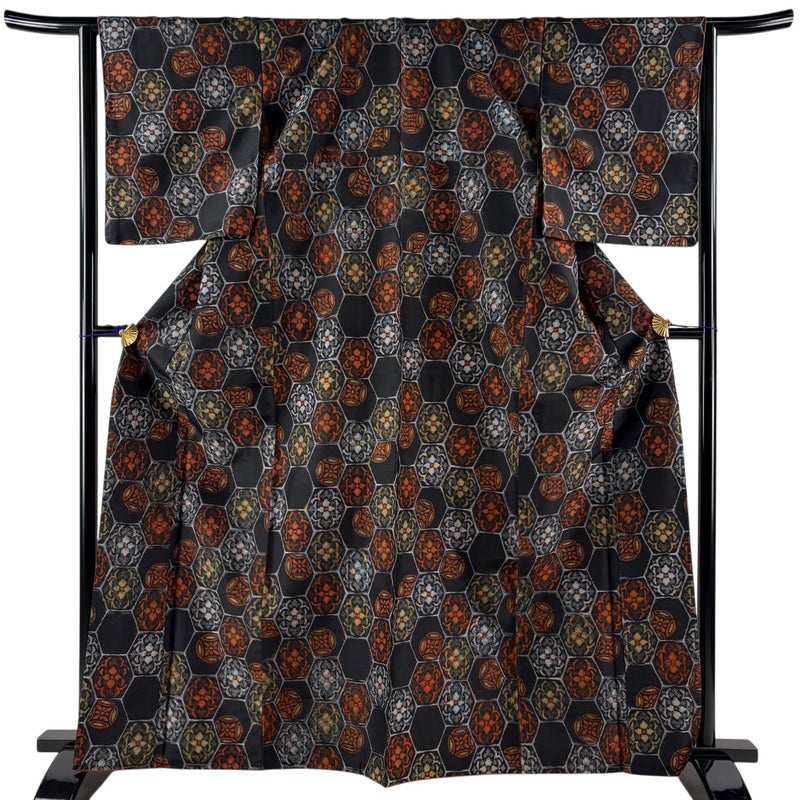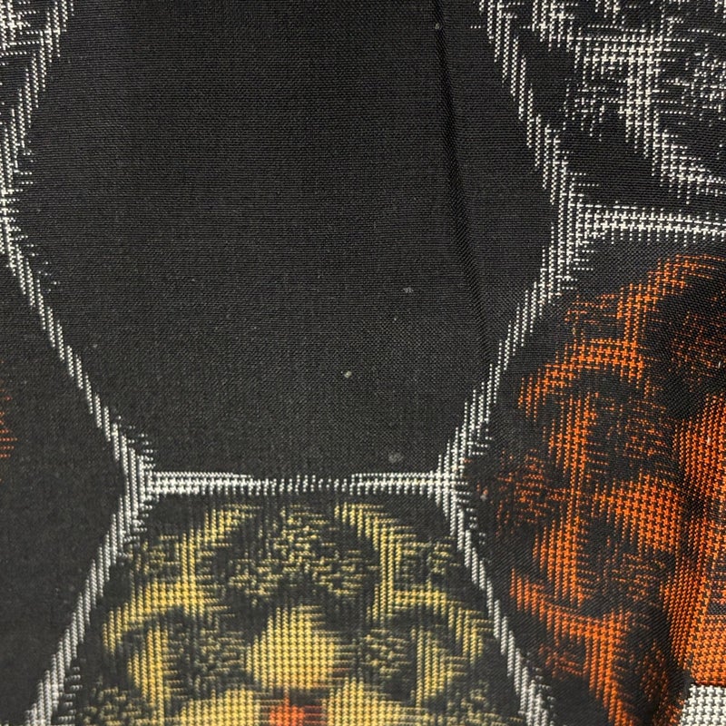 【着物ランク】優品 【素材】正絹 【身丈】約163.5cm 【裄丈】約65cm 【袖丈】約51cm 【袖幅】約33.5cm 【前幅】約23cm 【後幅】約30cm 【サイズ】M 【着物仕立て】袷 【着用時期】10~5月 【状態ランク】ランクB 【着物着用シーン】気軽なパーティー、観劇、食事会、正月、気軽なお茶会、街着
