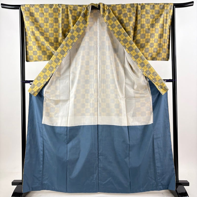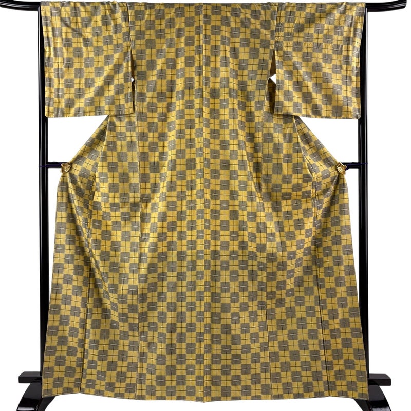 【紬】 黄色系 からし色 優品 A 約160cm~約169cm 裄丈66cm (M)size 袖丈50cm-60cm 4000-7980 美品 二万以下
