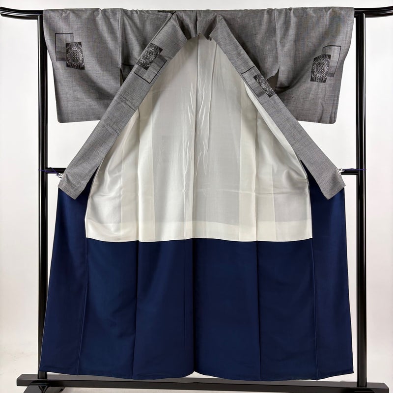 【紬】 灰色系 黒灰 優品 A 約150cm~約159cm 裄丈62cm以下 (S)size 袖丈47cm 4000-7980 美品 二万以下