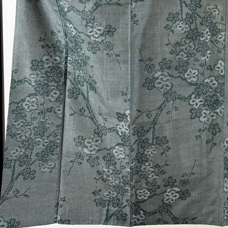 【紬】 緑系 深緑 優品 B 約150cm~約159cm 裄丈62cm以下 (S)size 袖丈47cm -3980 二万以下