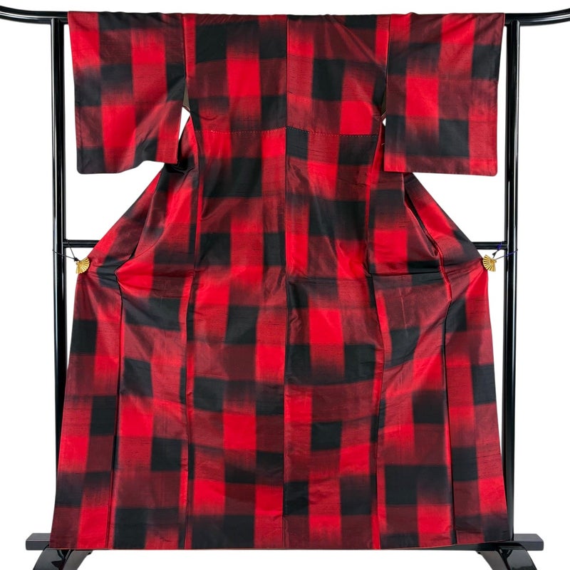 【紬】 赤系 赤 優品 B 約160cm~約169cm 裄丈62cm以下 (S)size 袖丈49cm -3980 二万以下