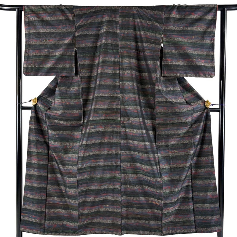 【着物ランク】優品 【素材】正絹 【身丈】約154cm 【裄丈】約62cm 【袖丈】約48cm 【袖幅】約32.5cm 【前幅】約23cm 【後幅】約28cm 【サイズ】S 【着物仕立て】袷 【着用時期】10~5月 【状態ランク】ランクB 【着物着用シーン】気軽なパーティー、観劇、食事会、正月、気軽なお茶会、街着