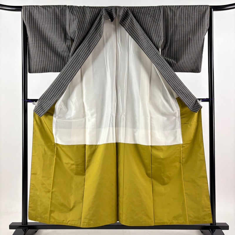 普段着やおしゃれ着として人気の紬でございます。 元々は日常着として着用していたので、その土地の風土に合った様々な種類がある素敵な一品です。 身丈を+6.0cm程、現在の長さから伸ばせます。 裄丈を+3.5cm程、現在の長さから伸ばせます。 衿周りや両袖口中に汚れ、表地所々にシワがございます。 裏地所々にシワがございます。 リユース品としては良い状態で、まだまだご活用頂けると思われます。 ※なお、厳しく商品の状態確認を行っておりますが、記載の汚れ以外にも見落とし箇所がある可能性がある旨ご了承いただけますと幸いです。 沢山の商品の中からご覧いただき誠にありがとうございます。
