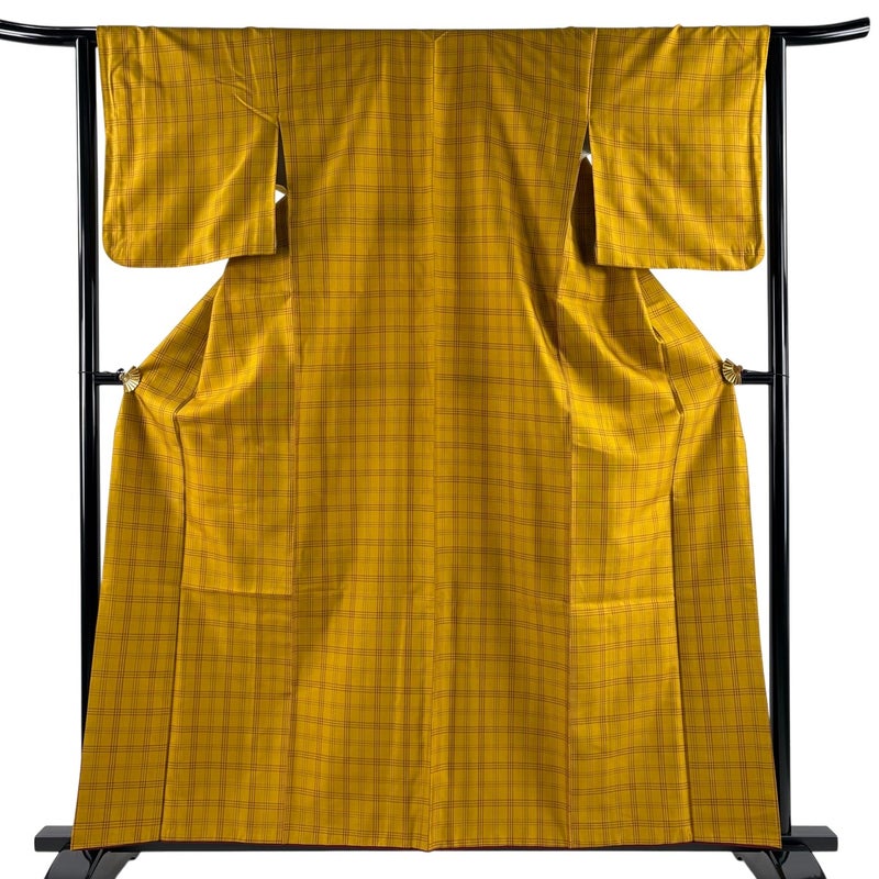 【紬】 黄色系 黄土色 名品 A 約160cm~約169cm 裄丈63cm-64cm (S)size 袖丈49cm 9990-29990 美品 二万以下