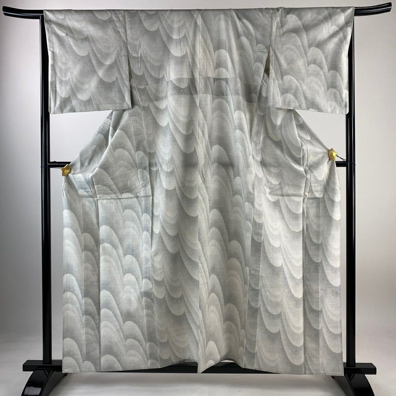 【大島紬】 灰色系 灰白 秀品 B 約160cm~約169cm 裄丈66cm (M)size 袖丈49cm 9990-29990 二万以下