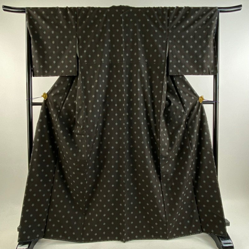 【大島紬】 茶系 焦茶色 逸品 A 約160cm~約169cm 裄丈67cm-68cm (M)size 袖丈49cm 30000- 美品 五万以下