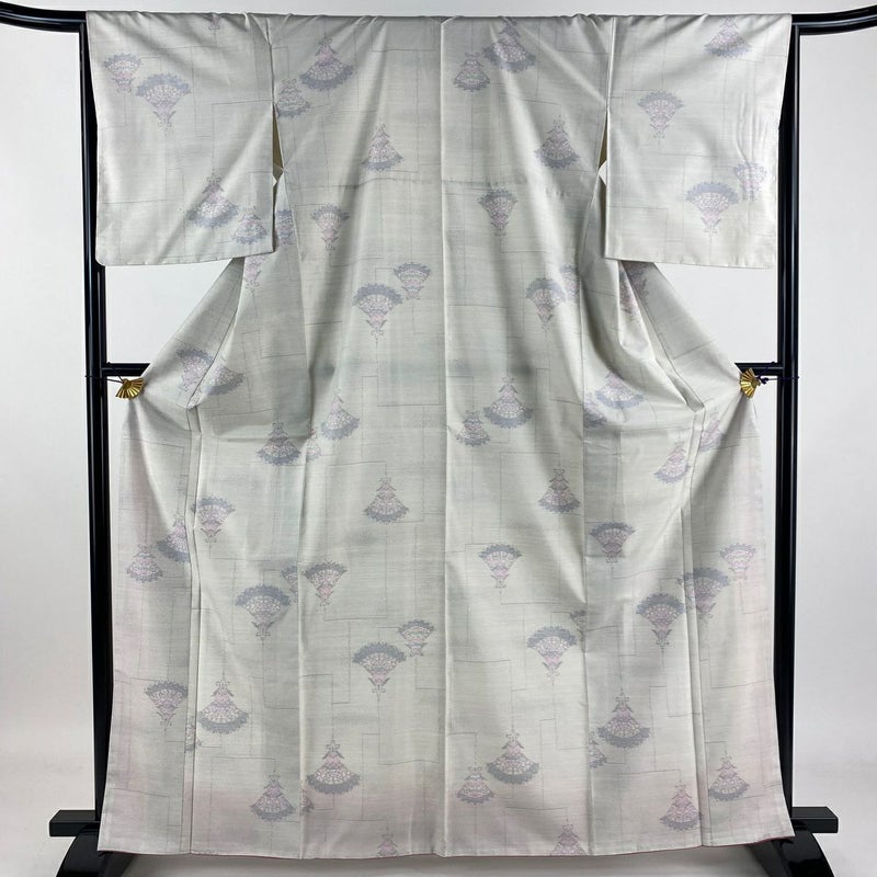 【大島紬】 灰色系 灰白 秀品 B 約160cm~約169cm 裄丈65cm (M)size 袖丈49cm 4000-7980 二万以下