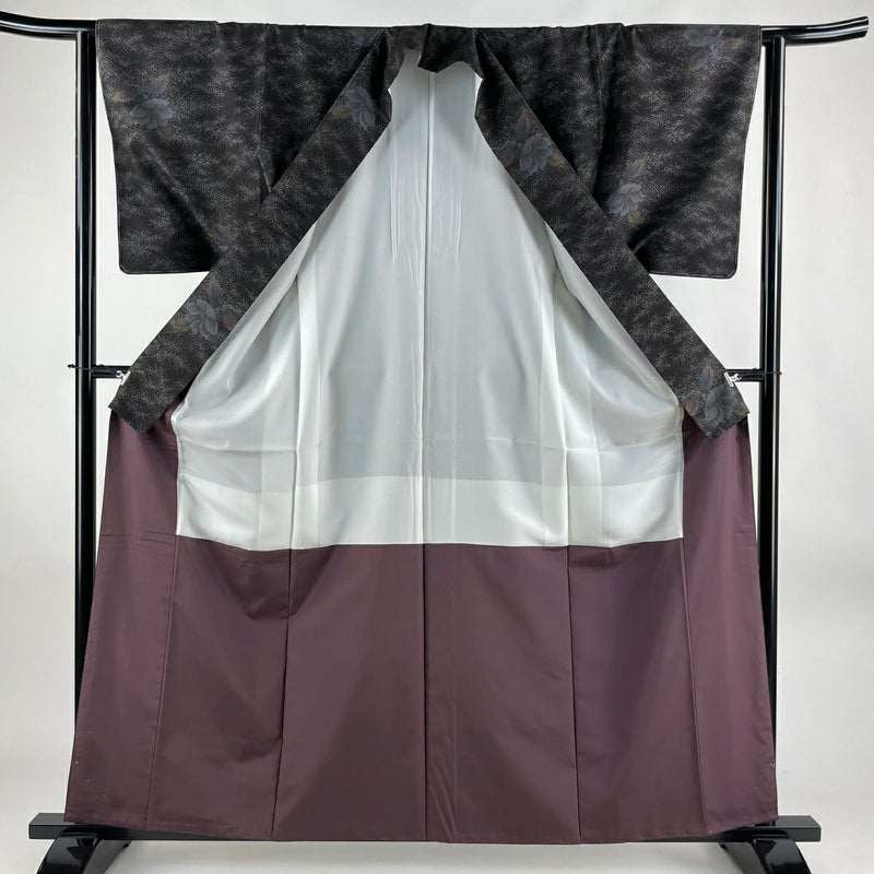 【大島紬】 黒系 墨色 逸品 A 約160cm~約169cm 裄丈62cm以下 (S)size 袖丈49cm 4000-7980 美品 二万以下