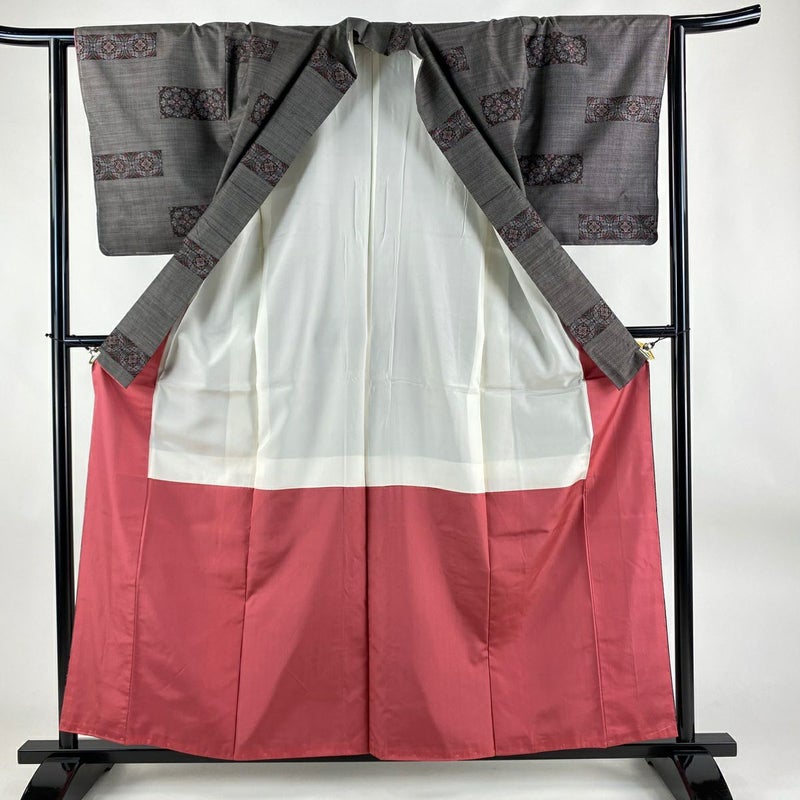 【着物ランク】秀品 【素材】正絹 【身丈】約159cm 【裄丈】約63.5cm 【袖丈】約49cm 【袖幅】約33.5cm 【前幅】約23.5cm 【後幅】約28.5cm 【サイズ】S 【着物仕立て】袷 【着用時期】10~5月 【状態ランク】ランクA 【着物着用シーン】気軽なパーティー、観劇、食事会、正月、気軽なお茶会、街着