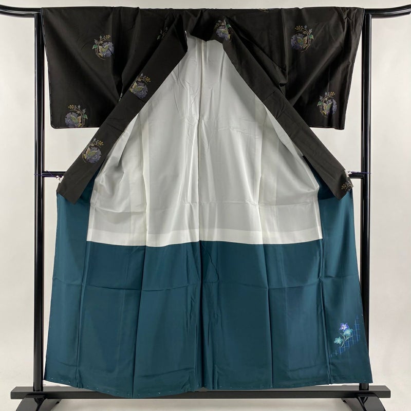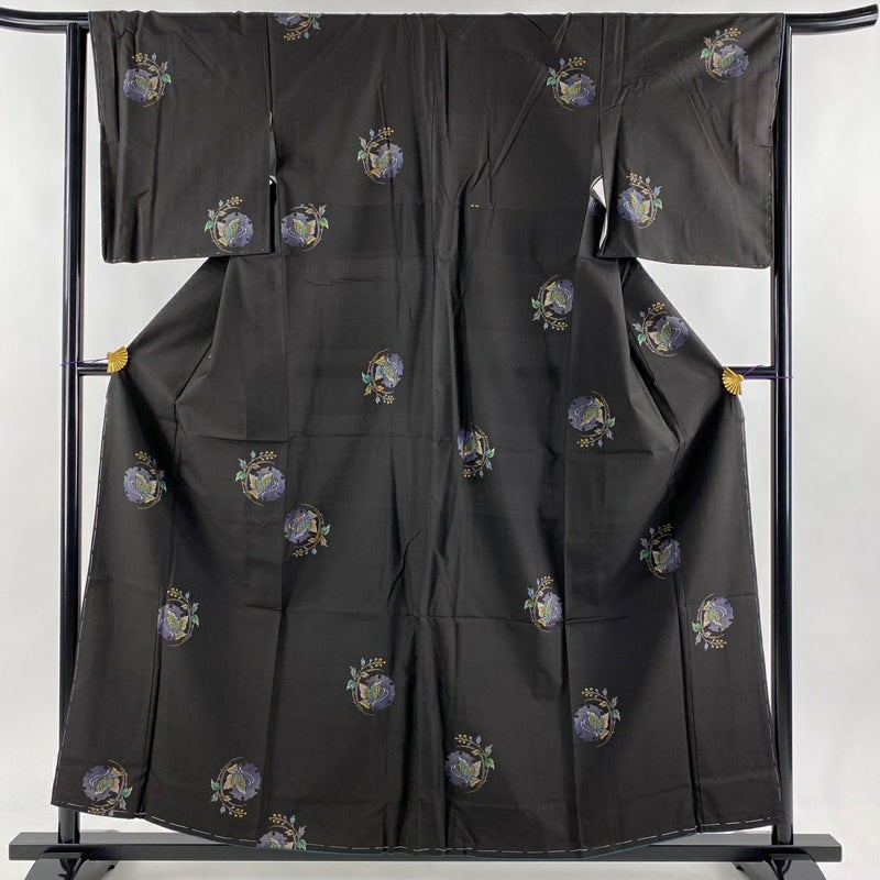【大島紬】 黒系 黒 逸品 B 約150cm~約159cm 裄丈63cm-64cm (M)size 袖丈49cm 30000- 五万以下