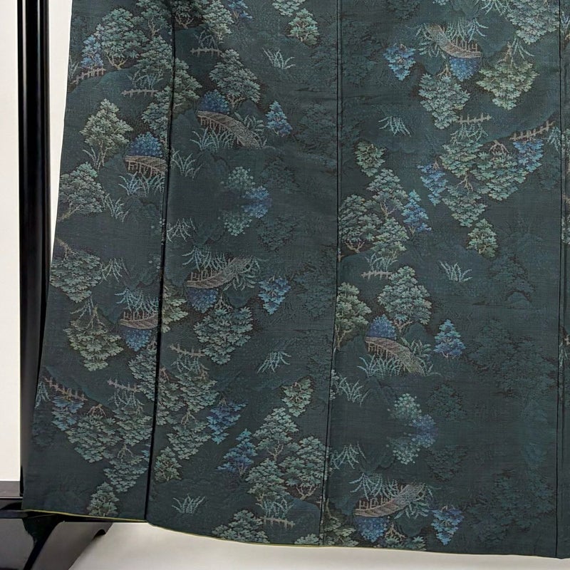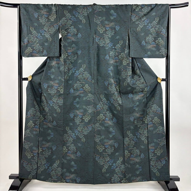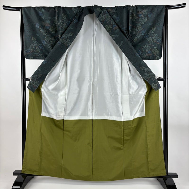 【大島紬】 緑系 深緑 秀品 B 約160cm~約169cm 裄丈66cm (M)size 袖丈50cm-60cm 4000-7980 二万以下